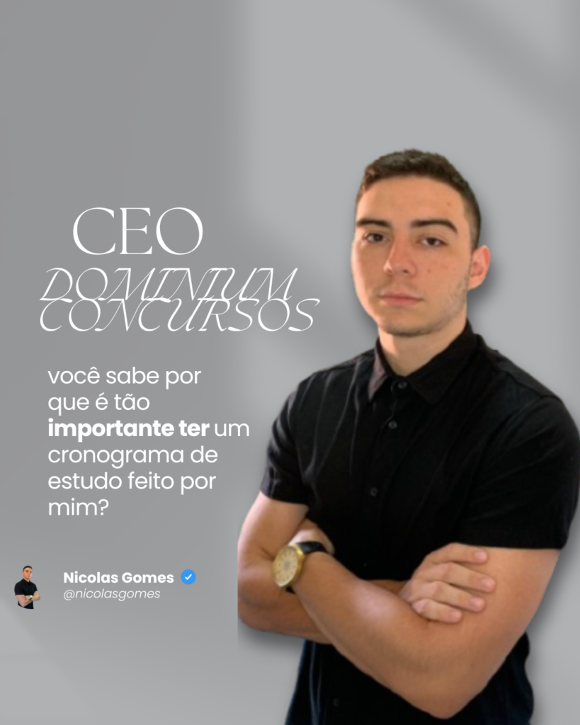 No meu cronograma, você vai receber um cornograma pronto para você seguir com matérias, dias e horários!
